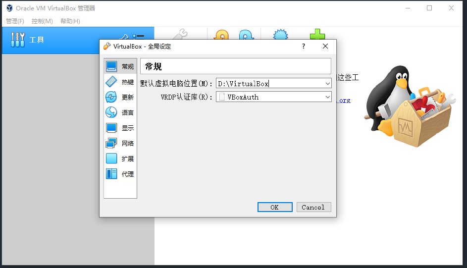 1.设置存储文件夹:管理-全局设定-常规-默认虚拟电脑位置-其他-更改到其他盘符如D:\Virtual